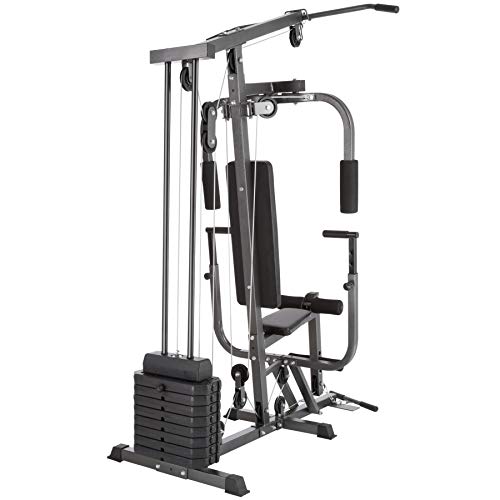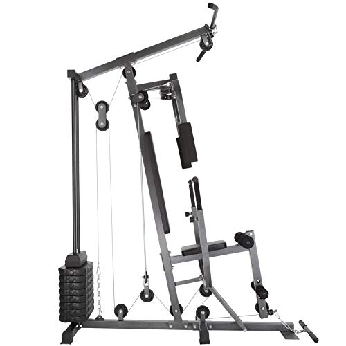 I numerosi esercizi di trazione e spinta e i pesi regolabili si prestano perfettamente per allenare in modo mirato tronco, braccia e gambe // Larghezza sbarra lat machine: ca. 101 cm // Larghezza tirante in basso: ca. 39 cm // Blocchi di peso: 8 x 4,5 kg & 1 x 3,5 kg.