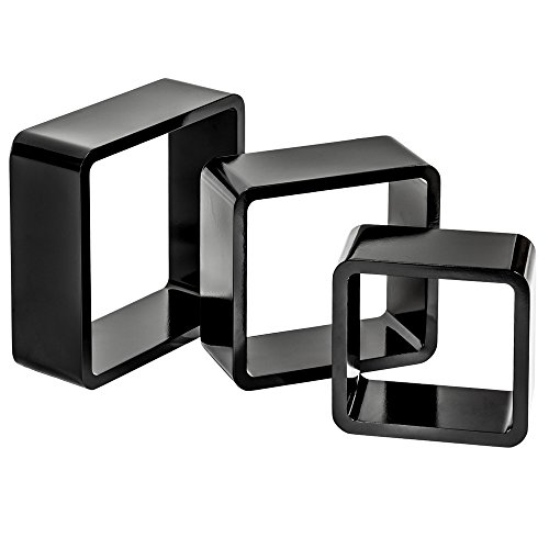 TecTake 800703 Set di Mensole Muro Cubo, Mensola Libreria Scaffale CD Dvd, Materiale di Montaggio in Dotazione - Disponibile in Diversi Colori (Nero | No. 403181)