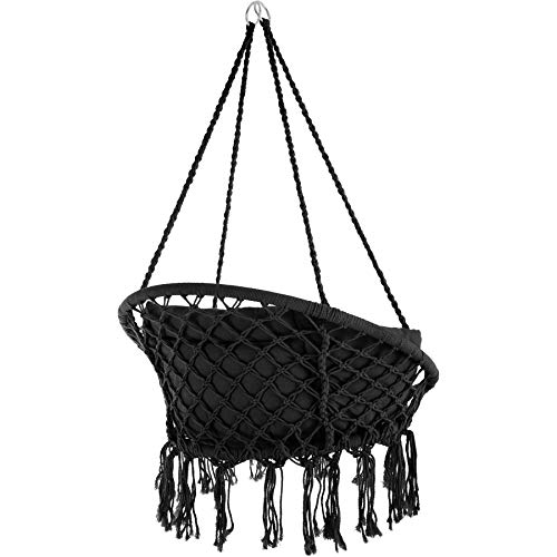 TecTake 800708 Poltrona Sospesa, Interni & Esterni, Diametro Seduta 60 cm, Robusta, Grande e Morbidissimo Cuscino - Disponibile in Diversi Colori (Nero | No. 403203)