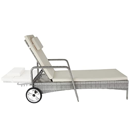 TecTake 800790 Lettino Poly Rattan, Arredamento da Giardino, Sdraio Prendisole, Divano Sedia Mobili, Esterno Patio - Disponibile in Diversi Colori (Grigio Chiaro)