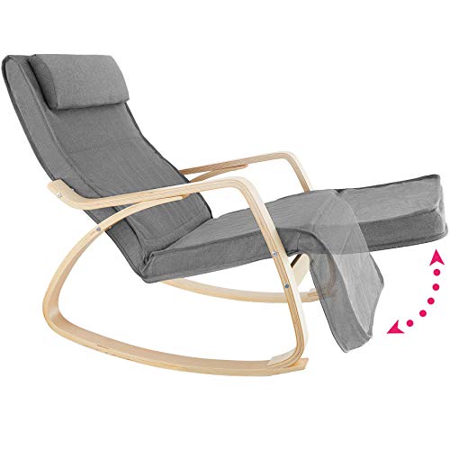 TecTake 800795 Sedia a Dondolo, Poltrona Relax, Poggiapiedi Regolabili, Cuscino Removibile, Ergonomica, Arredamento da Giardino, Interno Esterno (Grigio Chiaro)