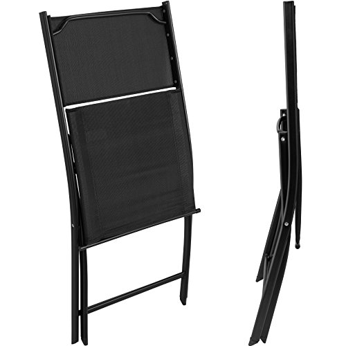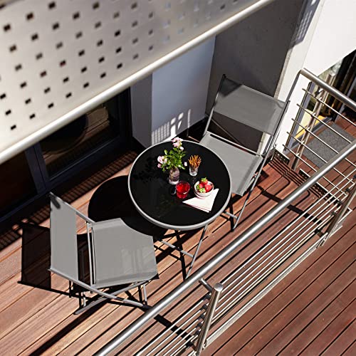 TecTake 800811 Bistro Set Mobili da Giardino, Tavolo con Piano in Vetro e 2x Sedie, Set da balcone, robusta Intelaiatura in Acciaio, Balcone Veranda Terrazza (Nero)