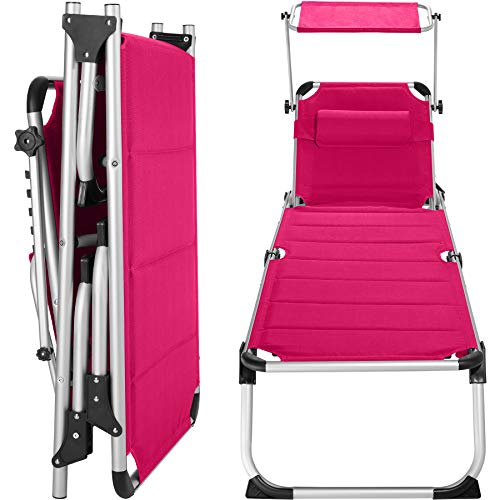 TecTake 800813 Sdraio da Spiaggia, Schienale Regolabile in 6 Posizioni, Parasole Regolabile, Cuscino, Trasportabile, Lettino da Giardino Relax Esterno (Rosa)