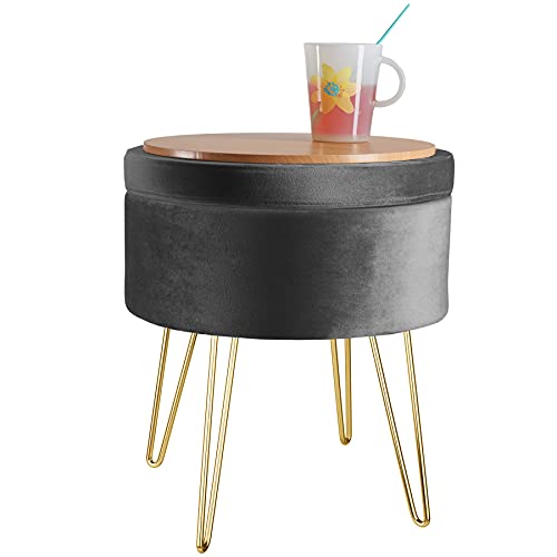 TecTake 800831 Sgabello Rotondo in Effetto Velluto, Grande Scomparto Interno, Gambe Color Oro in Filigrana Scintillante, Capacità Massima di Carico 300 kg (Grigio Scuro)