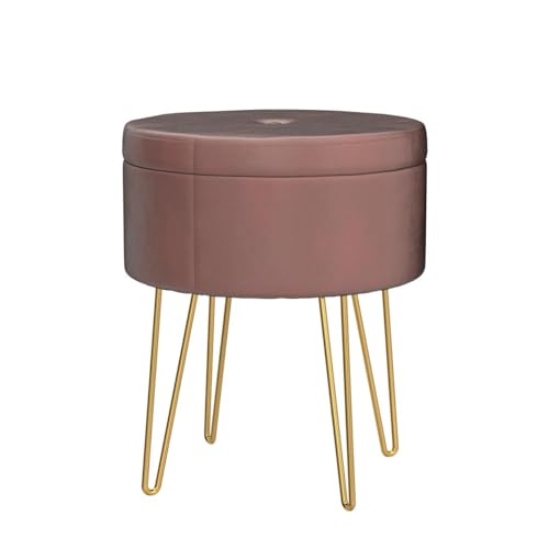 TecTake 800831 Sgabello Rotondo in Effetto Velluto, Grande Scomparto Interno, Gambe Color Oro in Filigrana Scintillante, Capacità Massima di Carico 300 kg (Rosa)