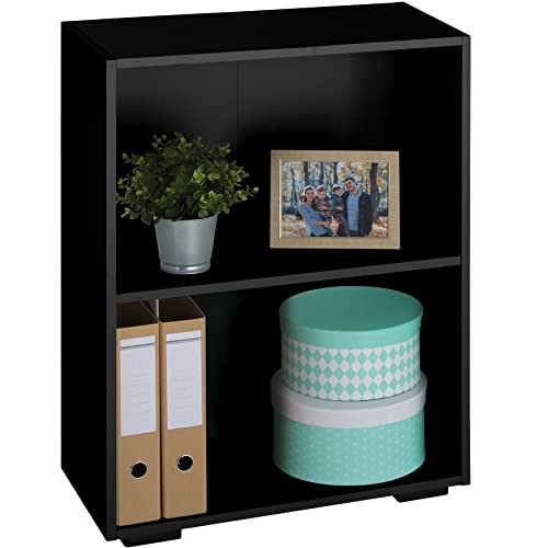 TecTake 800840 Scaffale per Libri con 2x Ripiani, Arredamento da Ufficio, Librerie Verticale, Costruzione Stabile e Sicura, Piastra MDF, Facile da Pulire (Black)