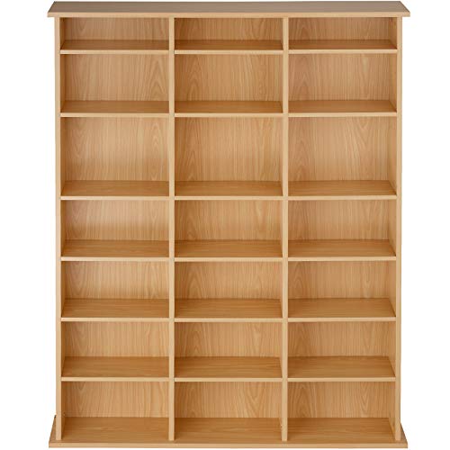 TecTake 800860 Scaffale Verticale per CD, 18 Ripiani Regolabili in Altezza, Costruzione Stabile e Sicura, Dispositivo Anticaduta, Libri Documenti Archivio (Faggio)