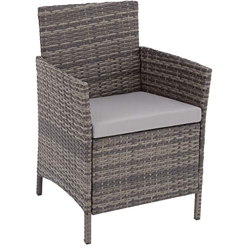 TecTake 800894 Set di Mobili da Giardino in Polyrattan, 1 Tavolino con Piano, 1 Panca, 2 Sedie con Cuscini, Robusto Telaio in Acciaio, Nuovo (Grigio)