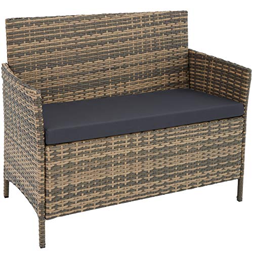 TecTake 800894 Set di Mobili da Giardino in Polyrattan, 1 Tavolino con Piano, 1 Panca, 2 Sedie con Cuscini, Robusto Telaio in Acciaio, Nuovo (Naturale)
