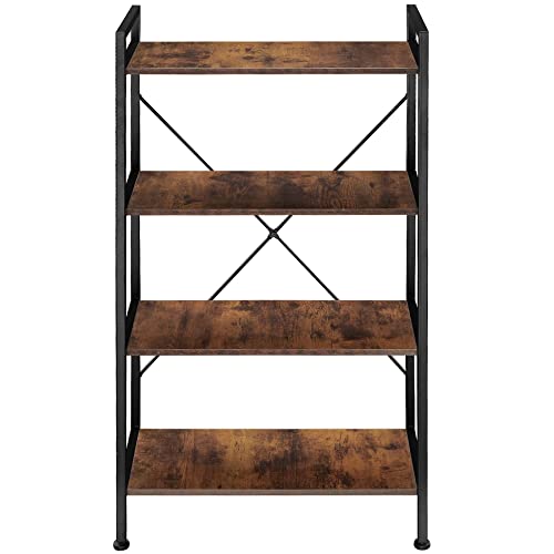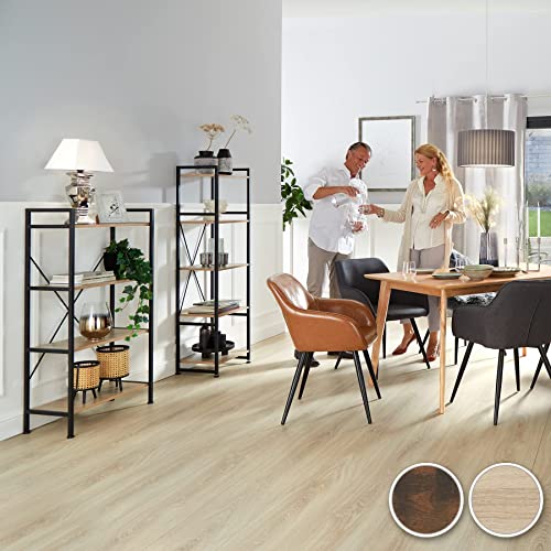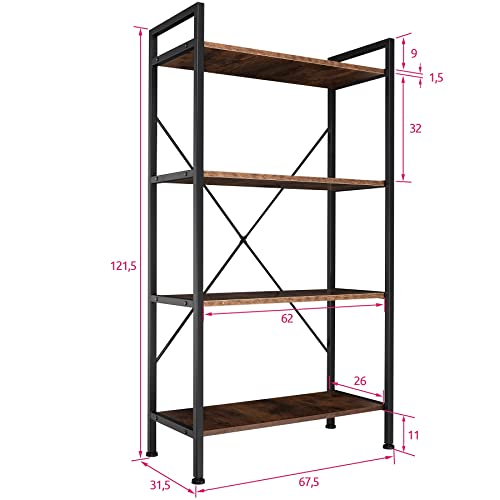 TecTake 800901 Scaffale Leeds industrial, Rustico scaffale verticale in acciaio e legno, Quattro ripiani con belle venature (scuro)