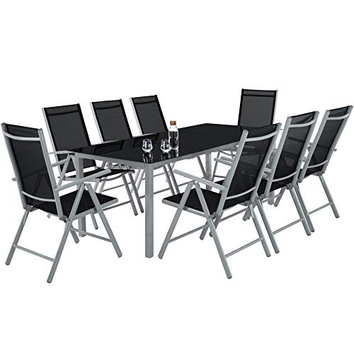 TecTake Alluminio set mobili da giardino 8+1 tavolo sedie - disponibile in diversi colori - (Grigio argento | No. 402165)