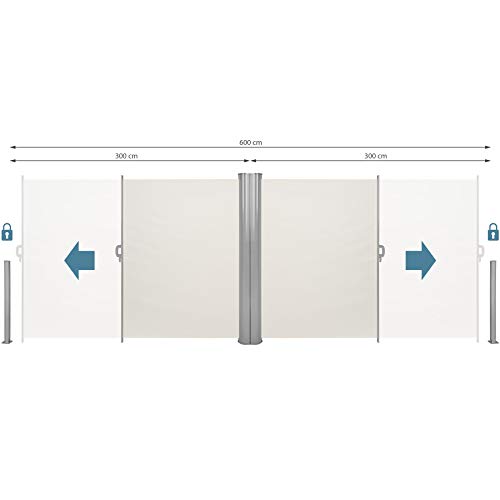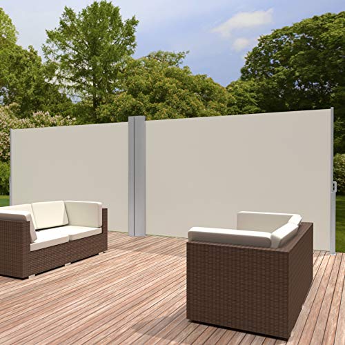TecTake Doppia Tende da Sole paravento Laterale frangivento Estensibile Corpo e Assistenza Post Interamente in Alluminio - Diversi Colori e Misure - (Beige | 200x600cm | No. 402339)