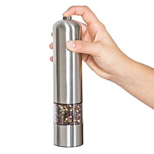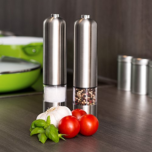 TecTake Macina sale e pepe spezie a batteria in acciaio con luce a - disponibile in diverse quantità - (2 pezzi | no. 401778)