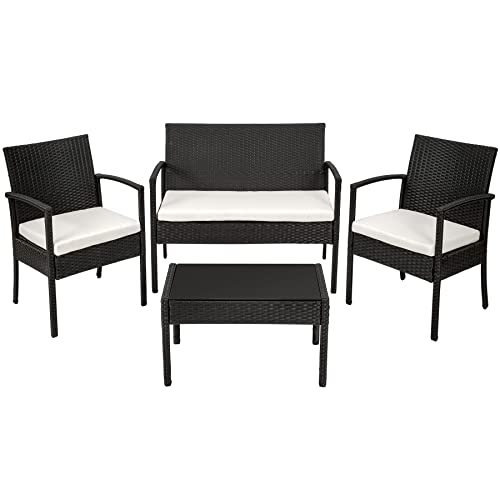 TecTake SET DI MOBILI RATTAN ARREDAMENTO GIARDINO SET COMPLETO - disponibile in diversi colori - (Nero)