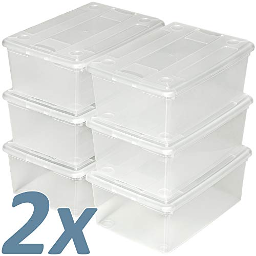 TecTake 6X scatole Scarpe plastica Storage Box Trasparenti Coperchio impilabili 33x23x12cm - Disponibile in Diversi quantità - (2x6 | No. 402005)