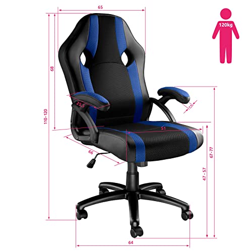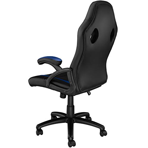 TecTake Sedia da Ufficio, Poltrona da Giocatore, 5 Rotelle Doppie, Sportiva Racing PC, Sagomatura Ergonomica, Altezza Regolabile -Disponibile in Diversi Colori (Nero-Blu)