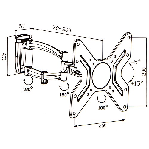 Tectake Supporto universale staffa parete muro TV LCD TFT LED inclinabile e girevole Vesa 50X50 fino 200X200 portata massima: 30kg 14-37" distanza 78-330mm
