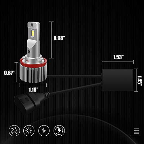 【Design Super MINI】H8 H9 H11 6500k Lampadine per fari night breaker laser,secondo il design originale della lampadina alogena 12V 60 / 55W, realizzate in lega di alluminio aeronautico con design ultra piccolo. Che è molto adatto per i fari auto e per auto abbaglianti e anabbaglianti, fendinebbia, luci di marcia diurna DRL e per aggiornare le lampadine alogene e la lampadina allo xeno HID.