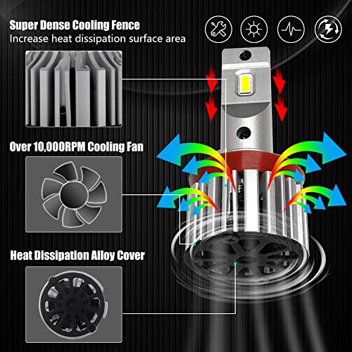 【4 volte ultra-luminosità, migliore visibilità]】 Adotta chip LED personalizzato e aggiornato, luce bianca allo xeno estrema 6500k, luce abbagliante 10600LM, luce anabbagliante 7000LM e la luminosità è 4 volte quella della lampadina alogena originale, il raggio più lungo di 200 metri può offrire una vista migliore e ti fa sentire come correre. Quando guidi con una versione aggiornata della lampadina, puoi vedere più lontano e reagire più velocemente