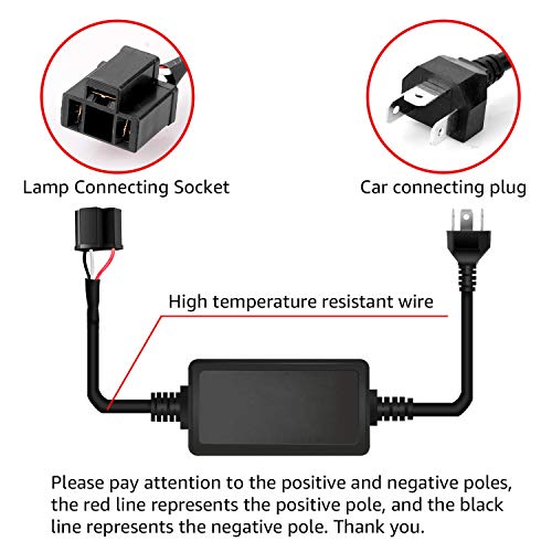 【100% Plug & Play】Design all-in-one, nessuna modifica necessaria, installazione diretta con lampadine a LED e presa di alimentazione del veicolo. NOTA: la linea rossa rappresenta il polo positivo, la linea nera rappresenta il negativo.