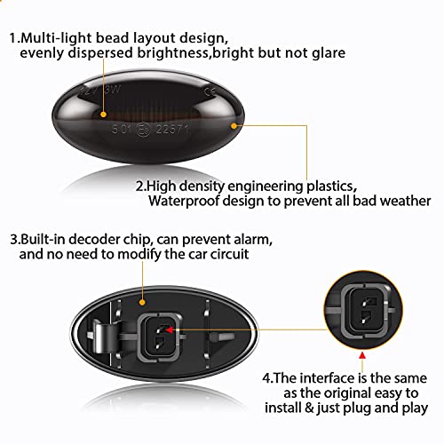 【Installazione semplice】 Garanzia di un anno. Questo indicatore di direzione sequenziale a LED è lo stesso delle luci OE originali, plug & play al 100%, nessuna modifica del cavo richiesta.