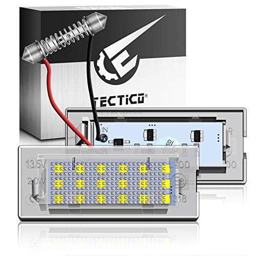 TECTICO LED Luci targa auto Lampada targa 3582 SMD nessun errore E-Mark ECE 6000K Xeno Bianco CANBUS Luci posteriori per E53 X5 E83 X3, 2 Pezzi