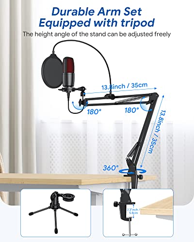 TECURS Microfono PC con Braccio, Gaming Microfono USB, 192kHz/24bit Microfono Streaming per YouTube/Podcast/Studio/Broadcast, Microfono a Condensatore con Filtro Antipop per Laptop/Windows/Mac/PS4/PS5