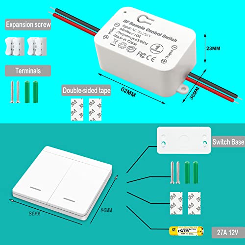 ◤Controllo da qualsiasi luogo◥: possiamo rimuovere l'interruttore dalla base dell'interruttore e trasformarlo in un telecomando. È conveniente per anziani e bambini controllare la luce ovunque. Dopo l'uso, l'interruttore può essere riposto nella base dell'interruttore. L'interruttore wireless adotta un design a sospensione fisica, sicuro e affidabile. L'interruttore può essere fissato alla parete con nastro biadesivo (incluso) o viti (incluse).