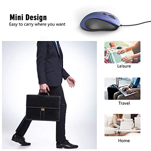 TedGem Mouse USB, Mouse Cavo Mouse USB con Cavo Mouse con Filo 6 Pulsanti Fino a 2000 DPI Mouse Ottico, Mouse PC per Windows 7/8/10 / XP, Vista, Linux e Mac OS (Blu)