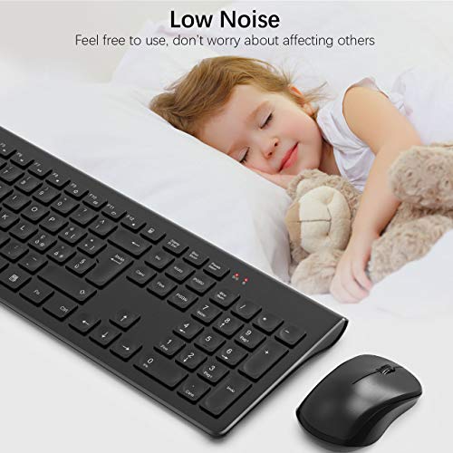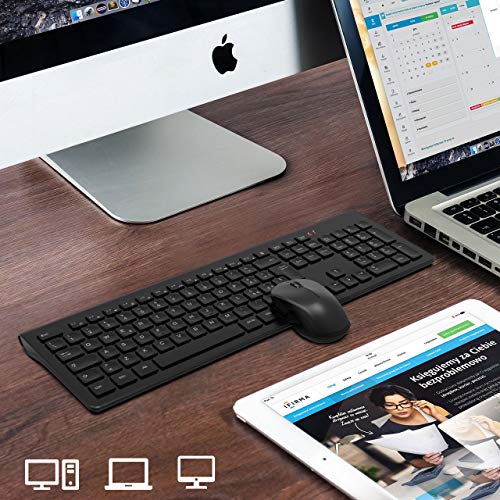 【 2.4G Stabile Connessione 】Tastiera wireless pc portatile adottano la tecnologia wireless 2.4G, distanza di connessione forte e affidabile fino a 10 m / 33 piedi e una connessione continua senza ritardi. Se non si utilizza la tastiera, il mouse, la tastiera e il mouse passeranno in modalità di sospensione per il risparmio energetico, svegliarsi premendo un tasto qualsiasi 【Nota. La tastiera necessita di 2 batterie AAA, il mouse wireless necessita di 1 batteria AA (batterie non incluse).