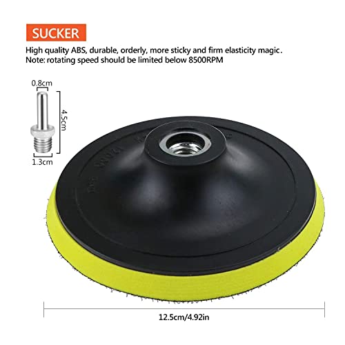 Dimensioni pastiglie di spugna - 5 pollici / 125 mm, confezione inclusa 5 pezzi di spugnette, 1 pz di lana tampone e 1 pz adattatore trapano filettato
