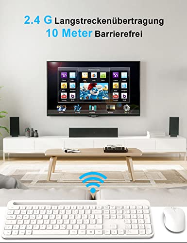 【Connessione stabile wireless 2.4 G】 La tastiera e il mouse utilizzano la tecnologia wireless 2.4 G, distanza di connessione fino a 10 m. Tastiera wireless e mouse a risparmio energetico. Se non si utilizza il mouse della tastiera, passare la tastiera e il mouse in modalità di riposo per risparmiare energia. Svegliati premendo qualsiasi tasto. Nota: La tastiera wireless USB richiede 2 batterie AAA, il mouse wireless richiede 1 batteria AA (batterie non incluse).