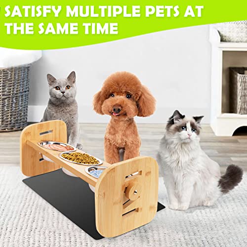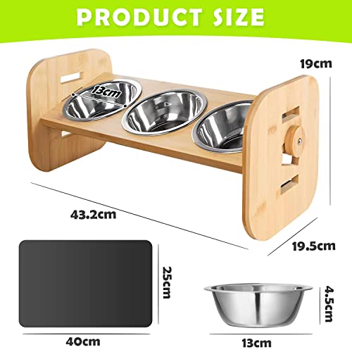Tedsrewa Ciotola per cani o gatti regolabile in altezza, 4 altezze, 300 ml per ciotola, separazione a secco e naso, mensola in bambù, ciotola per cibo asciutto, con set da tavola