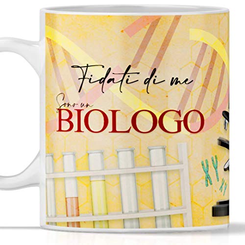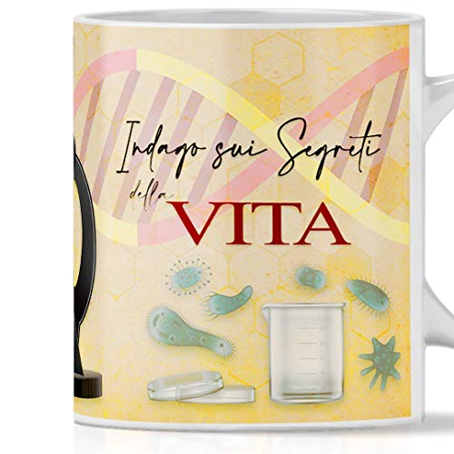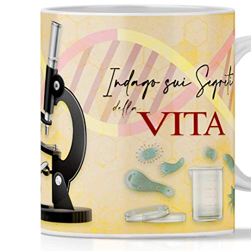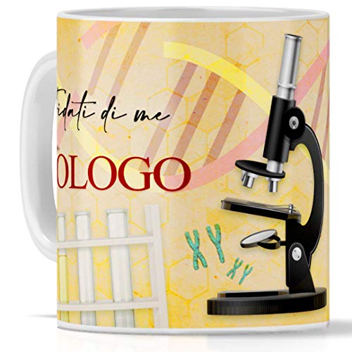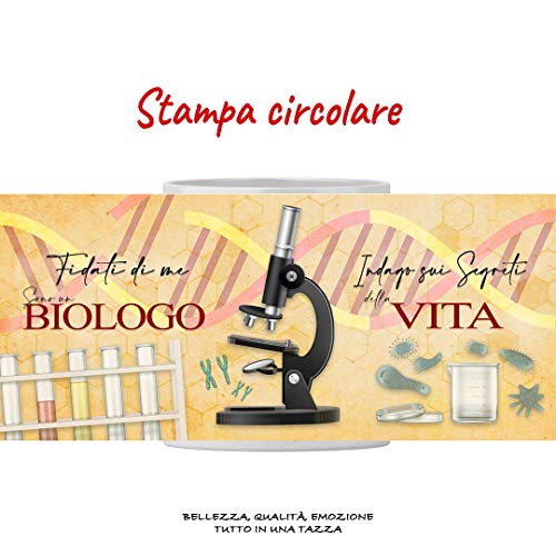 TeeDesign Tazza Biologo Interamente Stampata. Adatta per Colazione, The, tisana, caffè, Cappuccino. Ideale Anche Come Regalo di Laurea Biologia Biologo. Originale e di Grande Effetto su Ogni Lato.