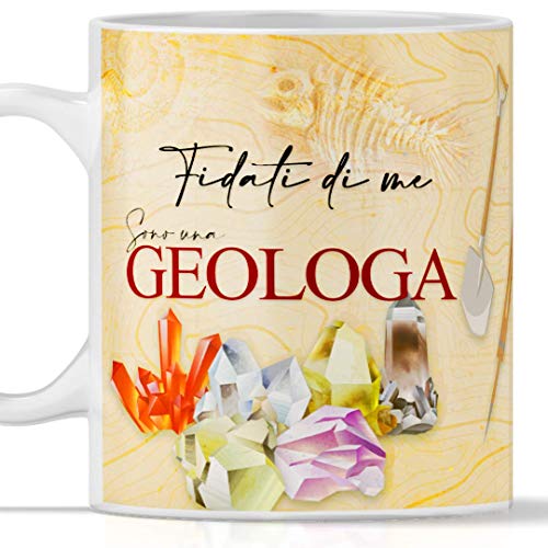 TeeDesign Tazza Geologa Interamente Stampata. Adatta per Colazione, The, tisana, caffè, Cappuccino. Ideale Anche Come Regalo di Laurea Geologia Geologa. Originale e di Grande Effetto su Ogni Lato.