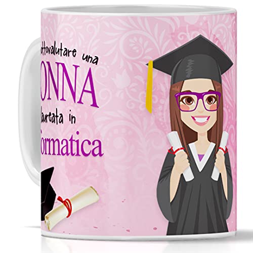 TeeDesign Tazza laurea INFORMATICA per DONNA. Idea regalo perfetta per laurea in Informatica