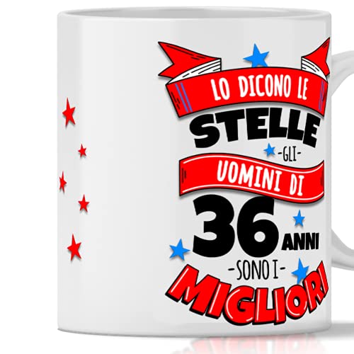 TeeDesign Tazza Regalo 36 Anni Uomo, Gadget Regalo per i trentasei Anni maschio, Lo Dicono le Stelle, gli Uomini di 36 Anni sono i migliori - Gadget divertente per Lui Tazza uomo nato nel 1987