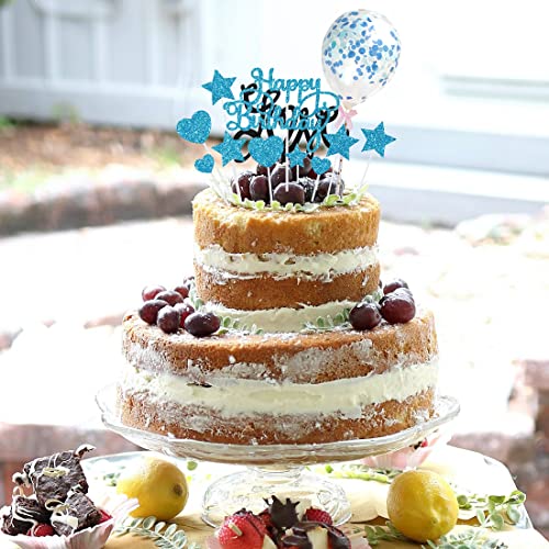 Teegxddy 1set Cake Toppers Set Boy Girl Birthday Cake Toppers Love Star Girl Boy Birthday Party Cake Toppers (Blue)