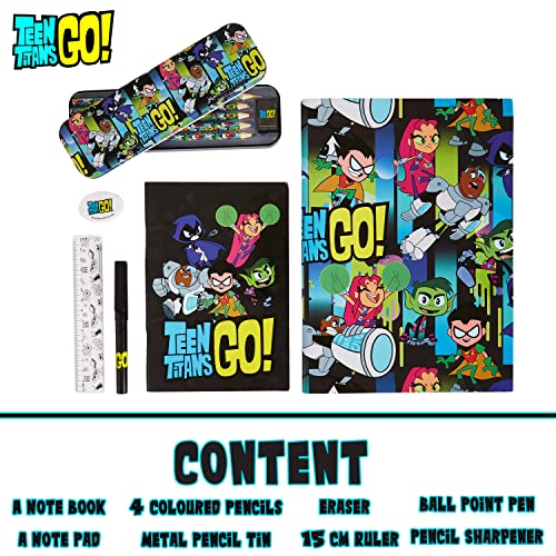 Teen Titans Go! Set Cancelleria Scuola, Back To School Kit Con Gomma Da Cancellare, Matite Colorate, Astuccio Portapenne + 6 Pz Di Materiale Scolastico Kawaii Originali, Idee Regali Bambini