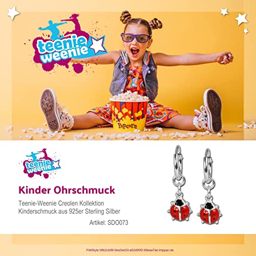 Teenie-Weenie, orecchini a cerchio per bambini, in argento rosso, con coccinella, 13 mm, D3SDO073, in argento