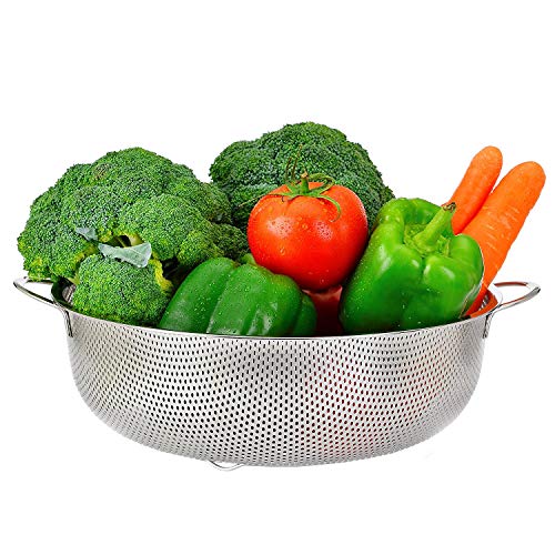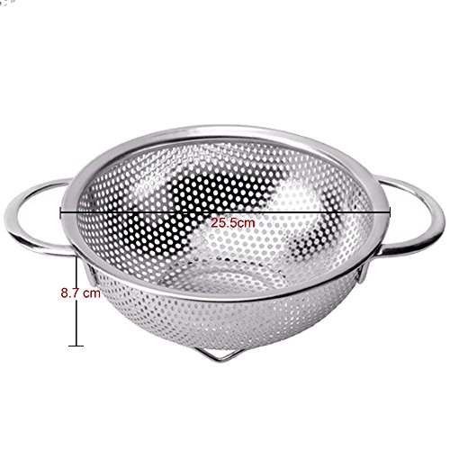 TEERFU - Colapasta in acciaio inox, microperforato, con manici, per spaghetti, riso, orzo, verdure e frutta fresca 25.5*9.3cm