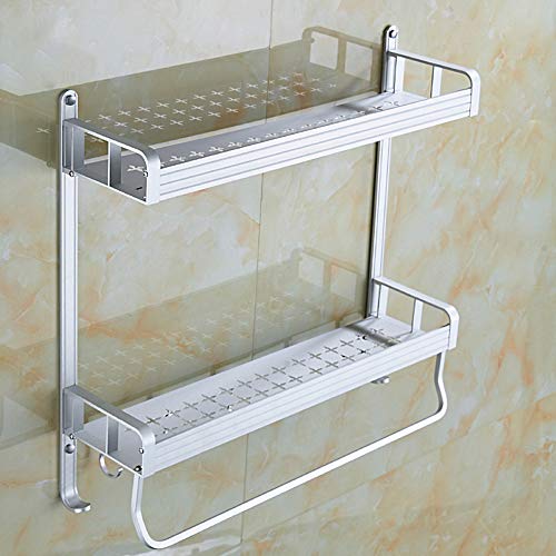 Teerfu - Mensola da bagno a parete, per doccia, a 2 ripiani, in acciaio inox, con ganci