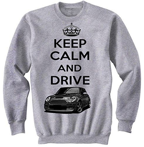 TEESANDENGINES Men's Mini Cooper Inspired Keep Calm & Drive Felpa Grigia Size XXLarge