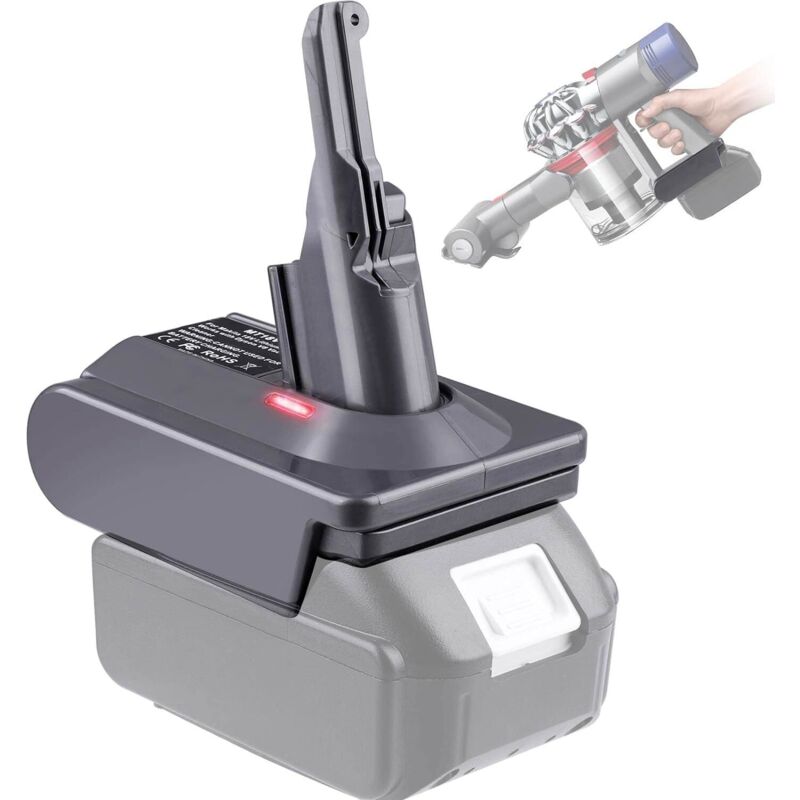 Eccellente funzione di conversione: Questo prodotto è adatto per batterie Makita 18V LXT 400 e alimenta aspirapolvere Dys V7. La versione aggiornata di MT18V7V8 è compatibile con gli aspiratori DYS V7 e V8. Si abbina alla batteria Makita 18V BL1850B BL1860 BL1840 ed è il sostituto perfetto per la batteria Dyson Dyson V7 SV11. Solo adattatore, senza batteria. Compatibile con la batteria Makita 18V: Perfetta compatibilità con la batteria Makita 18V LXT-400: BL1850 BL1840 BL1860 Adatto per LXT400, 194204-5, 1942 205-3, 1942 230-4, 1949-1, ecc Perfetta compatibilità con Dyson V7 e Hoovers: adatto per Dyson V7 e aspirapolvere: testa, peluche, animal+, materasso, chiave chiave, HEPA, auto+barca, Absolute, Extra, ecc. Alta qualità: Il materiale ABS di alta qualità garantisce la sicurezza e una buona esperienza utente. Il tempo di utilizzo dipende dalla capacità della batteria installata. Gentile promemoria: * 1. Quando non è in uso, rimuovere la batteria dall'adattatore* 2. La batteria non