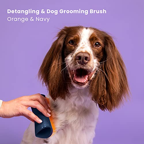 Pet Teezer, spazzola districante e per la toelettatura del cane, colore blu marino e arancione