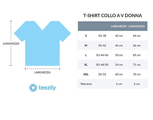 TEEZILY T-Shirt Collo a V Donna Grafico elettrocardiogramma con sagoma di Un Cavallo - Blu Navy - M
