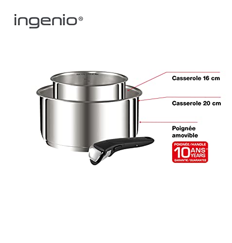 Tefal Ingenio Preference Inox - Set di pentole 16/20 cm (1,6/2,6 L) a induzione + manico rimovibile a induzione L9408802
