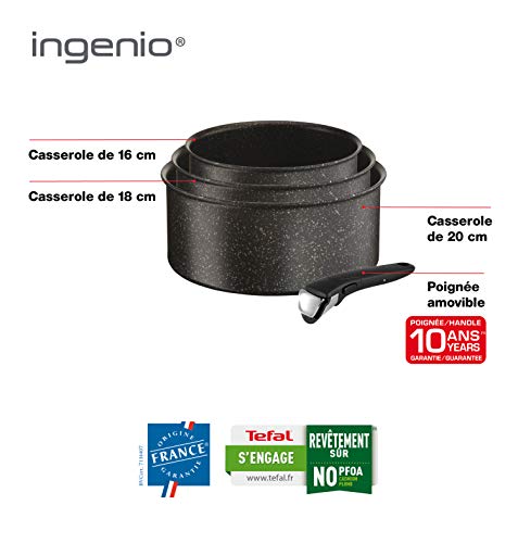 Tefal l6719012 St Ingenio 5 Authentic Non-Stick induzione Set di 3 pentole e 1 Manico Alluminio Nero 28.5 x 22.5 x 11.5 cm
