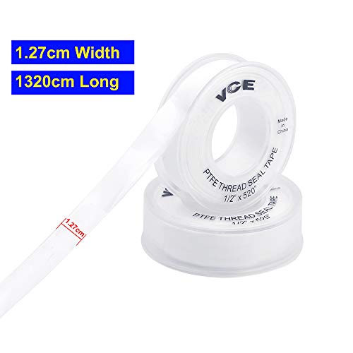 VCE Teflon Idraulico In PTFE, Teflon Nastro Adesivo di PTFE ad Alta Densità per Riparare Tubi, Rubinetti, Valvole Radiatore, 12 mm x 13 m, 2 Rotoli, Bianco