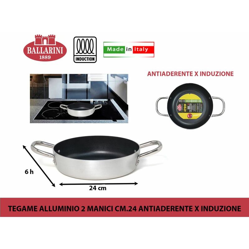 Tegame alluminio 2 manici cm.24 antiaderente x induzione